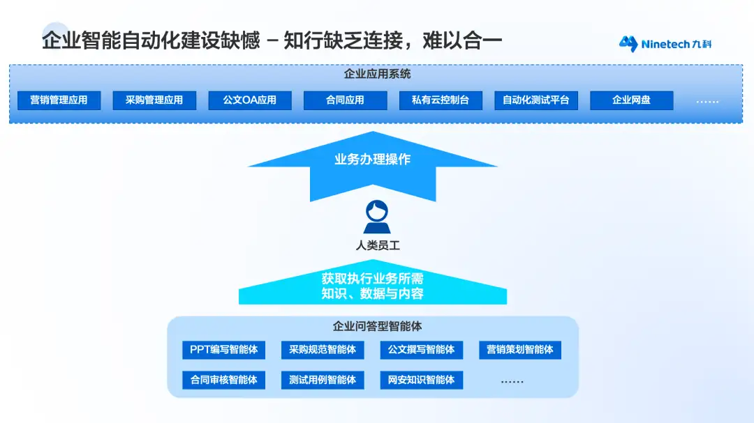 这种“只说不做”的现状,让企业数字化转型卡在“最后一公里”——投入大量资源搭建的智能体,没能真正减轻员工的实际工作量,也未实现业务流程的本质性提效。
