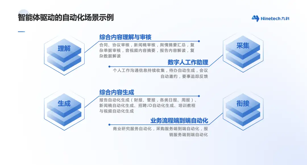 业务流程端到端自动化是智能体价值的集中体现。它打通了“数据-决策-执行”的完整闭环。