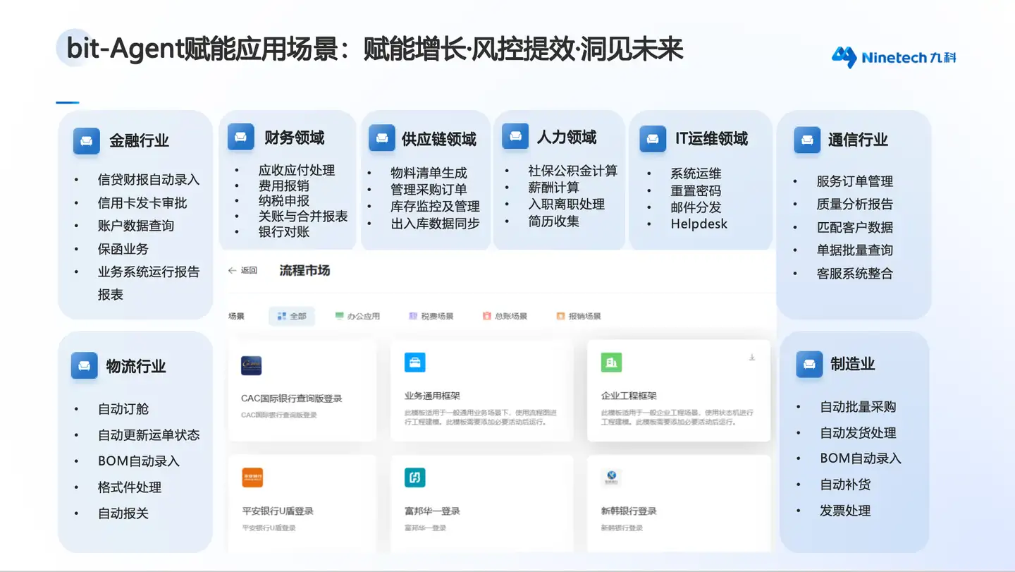 bit-Agent将业务目标通过大模型规划成清晰的子任务,并为每一步生成可执行的检查项,拆解结果会被验证是否可在现有系统上自动化执行,并封装为可复用的能力单元。这样能把含糊的业务需求快速变成可落地的执行计划。能力库实现了步骤复用与可视化管理,便于跨团队调用与审查。